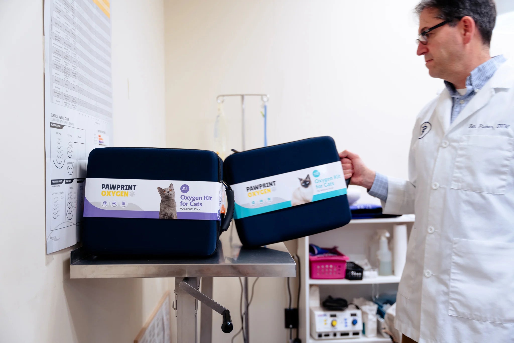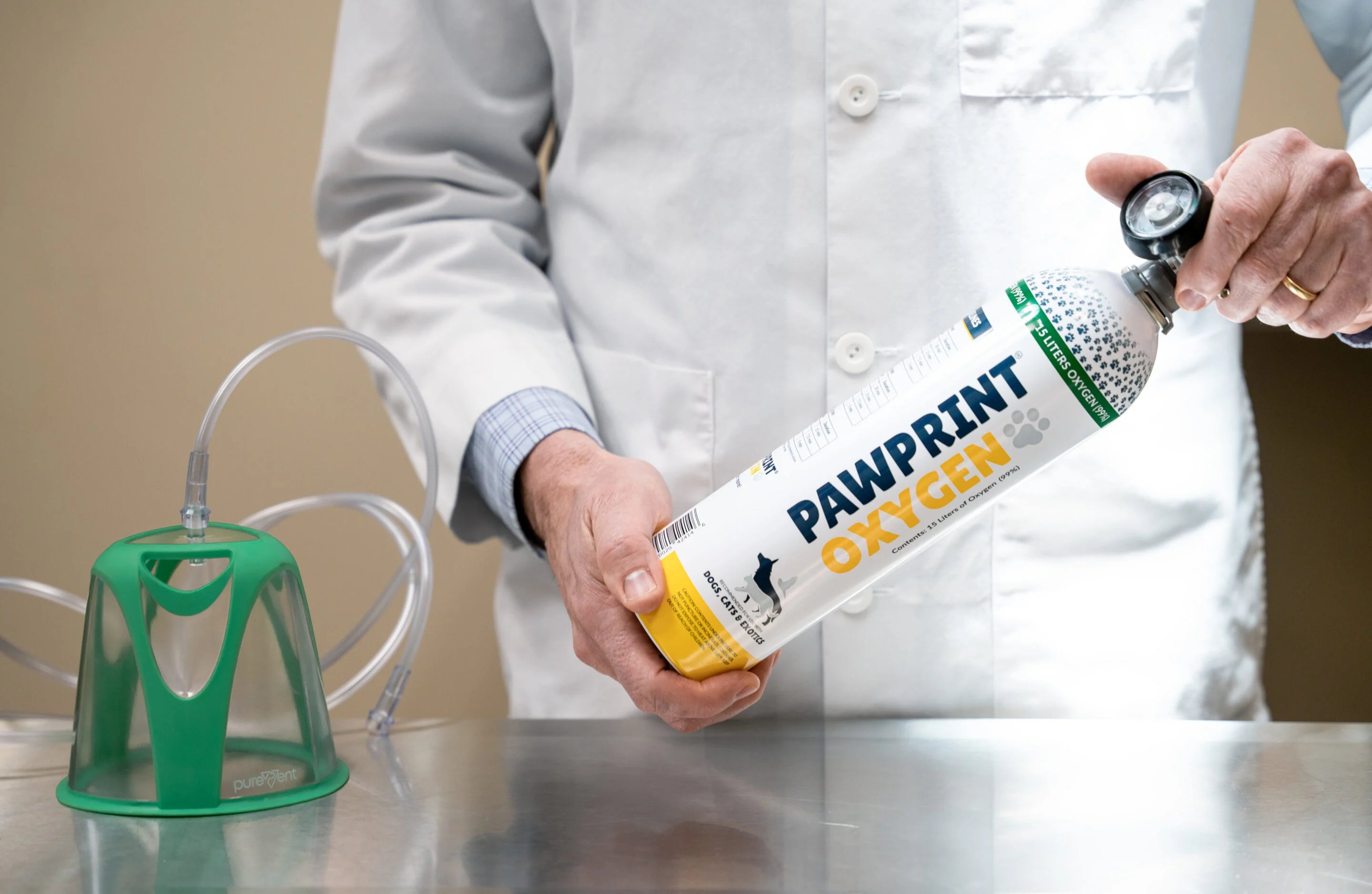 Supply your veterinary clinic with portable oxygen for use during transport, in your clinic, and at home. Stocked in thousands of veterinary hospitals, Pawprint Oxygen is your go-to for oxygen equipment.