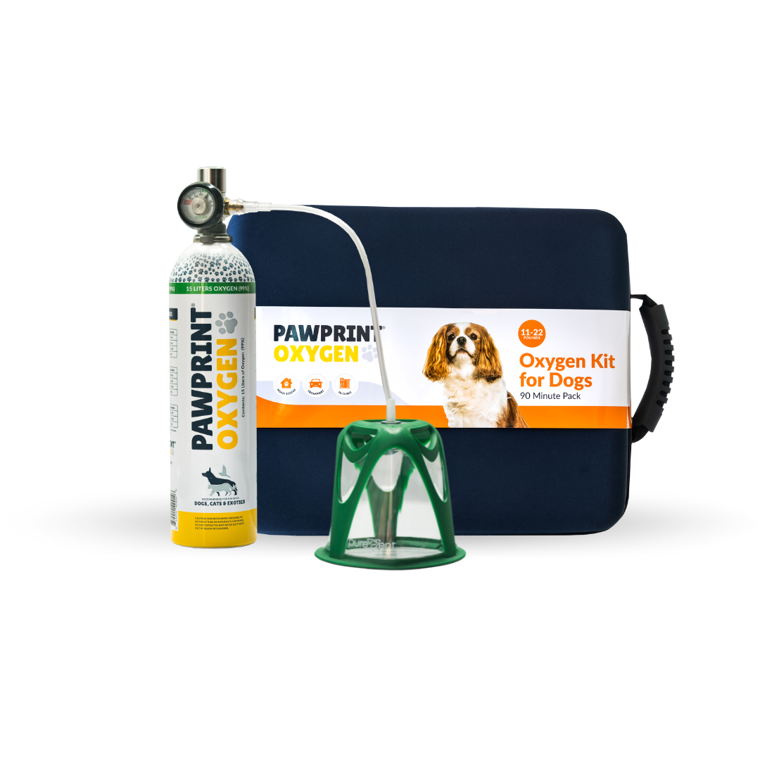 Of the kit can be increased by purchasing additional Pawprint Oxygen Canisters, which contain 15 liters of oxygen (99%) each. At a minimum, the Kit will include enough oxygen to match the advertised duration. If the client would like to purchase additional Oxygen Canisters, they may do so. This is common for clients who may need more oxygen due to longer drives and more frequent therapy sessions.