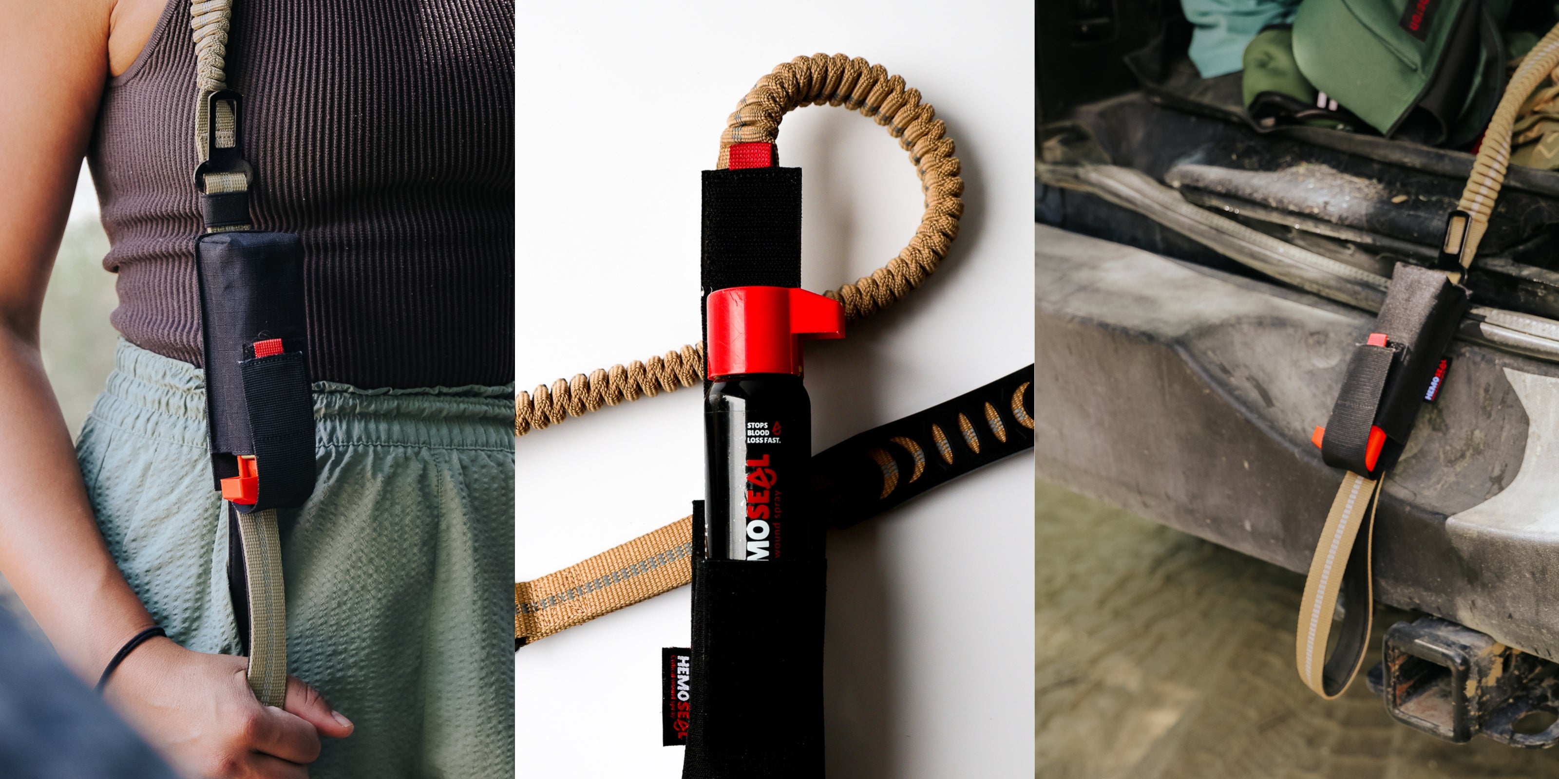 Be prepared for any adventure with our durable stretch leash and HemoSEAL carry case. The leash features a secure pinch-locking system, bungee-style flexibility, and an oversized comfort handle for control and ease. The matching carry pouch holds one HemoSEAL canister, so you can keep it close at hand wherever the day takes you. HemoSEAL sold separately.